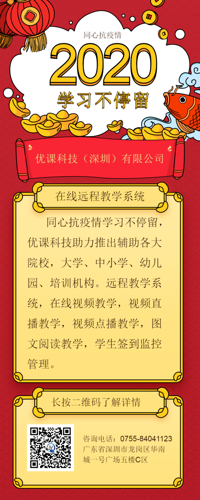 同心抗疫情學習不停留,優(yōu)課科技助力推出輔助各大院校,大學、中小學、幼兒園、培訓機構。遠程教學系統,在線視頻教學,…